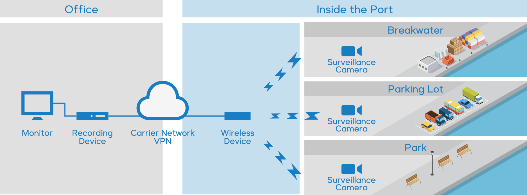 The client was planning to install surveillance cameras across wide facility grounds outdoors, including parks, parking lots, and other facilities under management, to monitor the grounds and the facilities themselves. Because installing wired network infrastructure across the site was impractical, we were asked to design a wireless network to support the cameras.